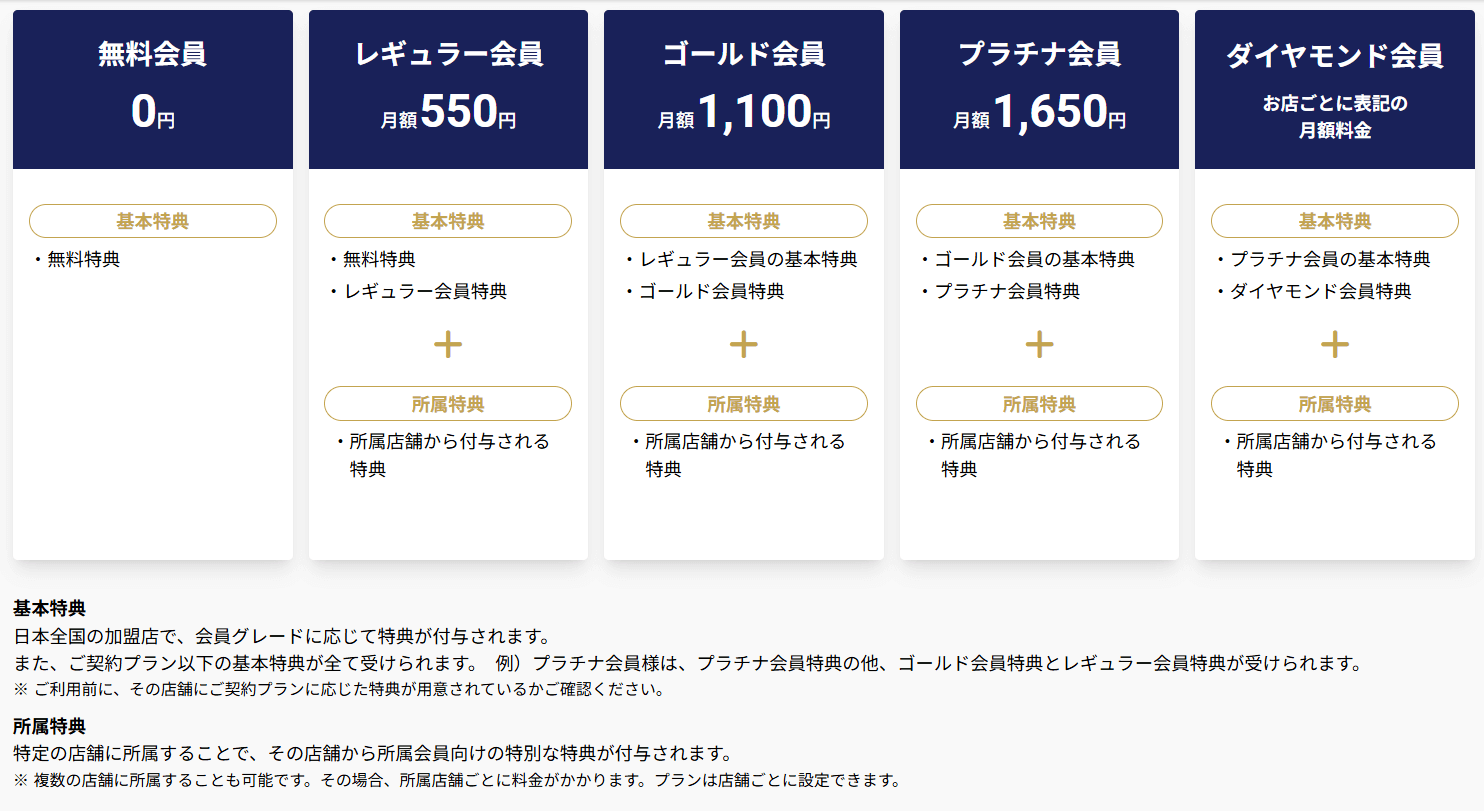 「現在、サブパスの会費プランは無料会員を含めて5つの区分があります。有料プランは、月額550円のレギュラー会員、1,100円のゴールド会員、1,650円のプラチナ会員、そして、店舗ごとに独自に価格を設定できる“フリープラン”の4種類です。ただし、アプリ上で設定できるプラン数が最大4つまでという仕様ですので、加盟店に適した柔軟な価格設定ができるようにするべきではとの声が出ています」